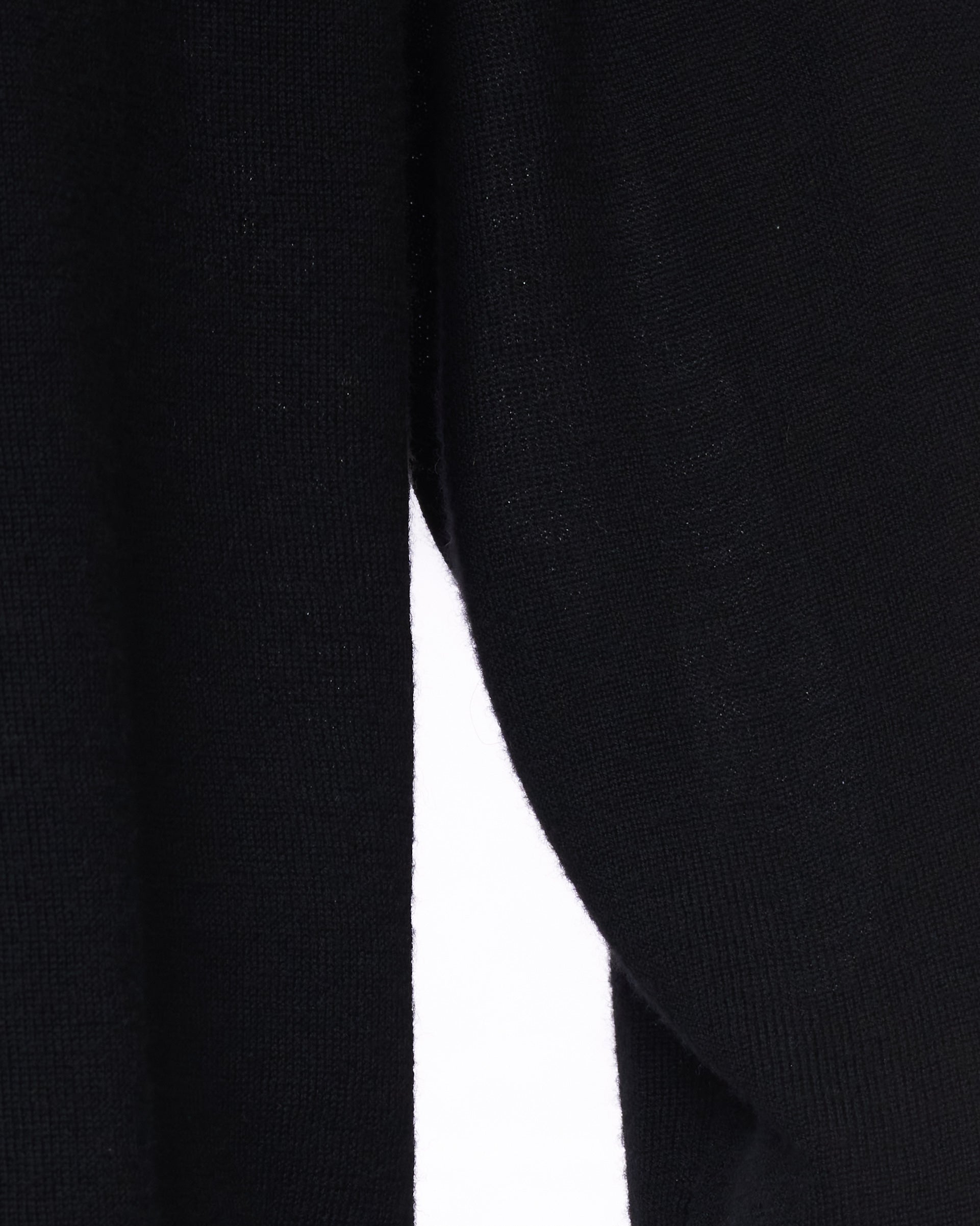 TURTLE NECK. RIB KNIT COLLAR AND CUFFS. DROPPED SHOULDERS.