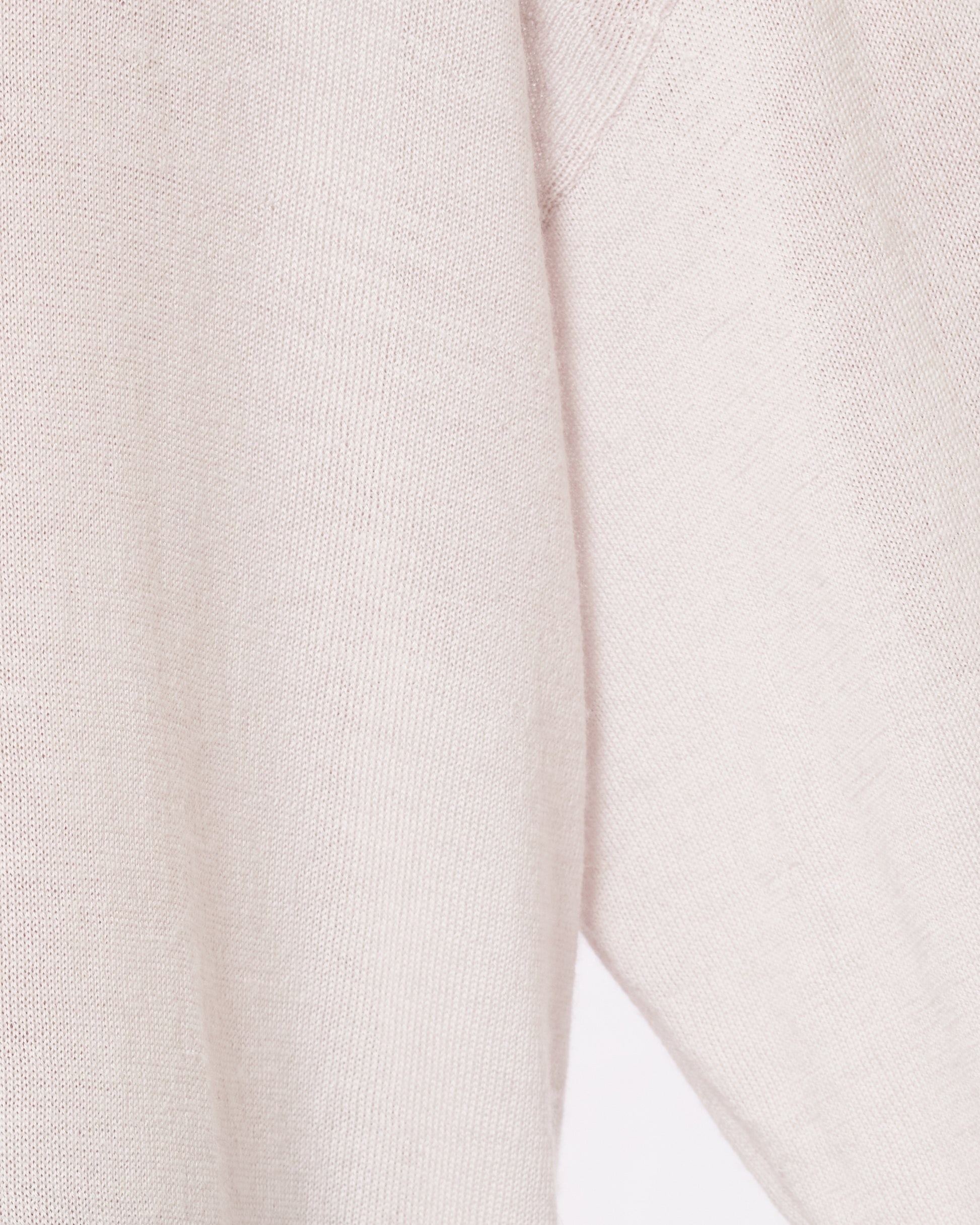 TURTLE NECK. RIB KNIT COLLAR AND CUFFS. DROPPED SHOULDERS.
