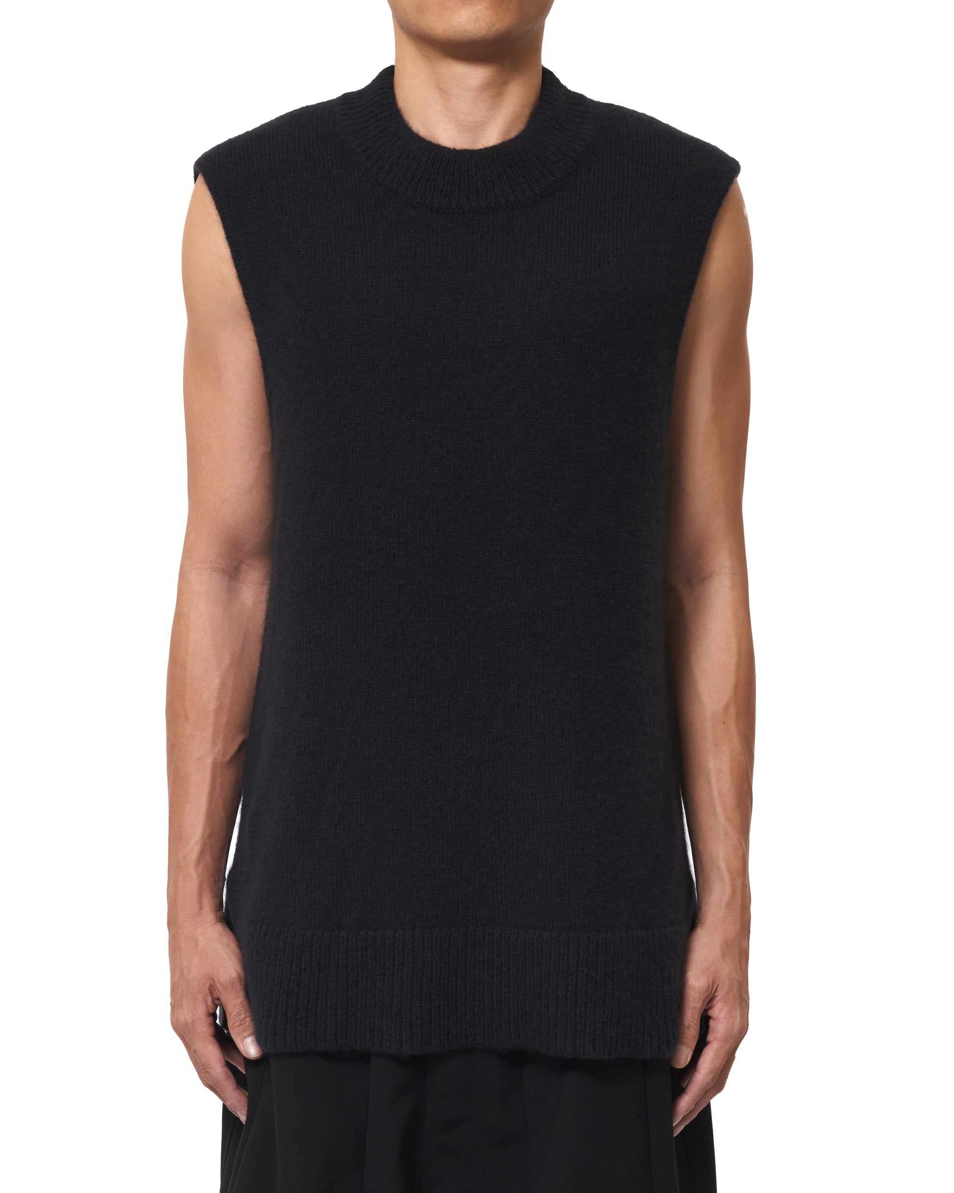KNITTED SLEEVELESS TOP WITH CREW COLLAR. SIDE SEAM VENTS.