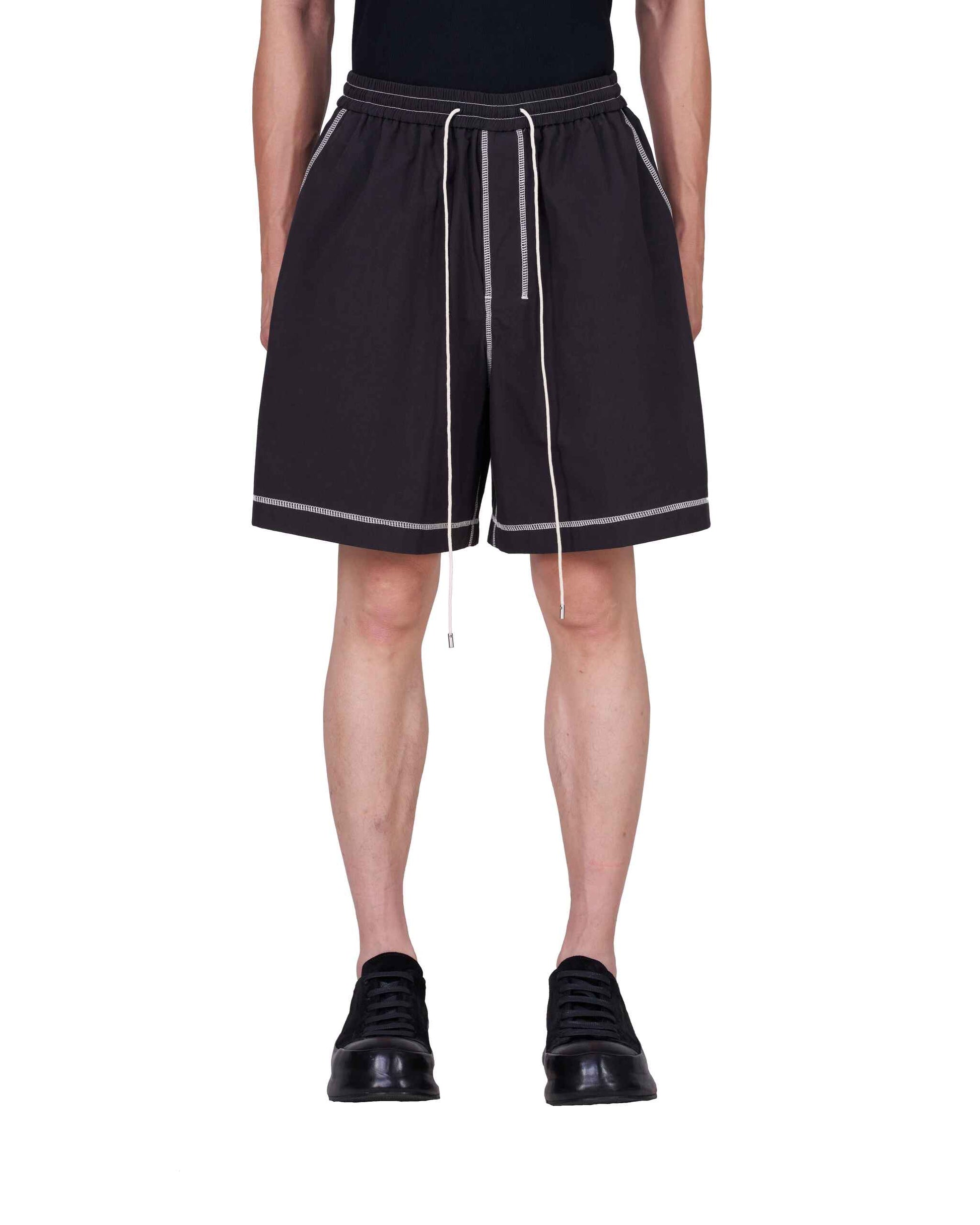 BOXING SHORTS WITH TWO POCKETS. SLIT AT HEM. ELASTICIZED WAISTBAND. BUTTON-FLY.
